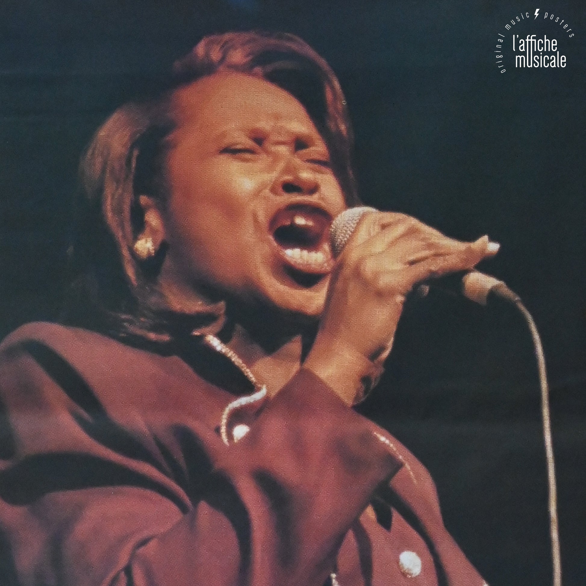 Cette affiche authentique célèbre ce moment rare de communion musicale et d’inspiration. L’œuvre, imprimée en 1996, met en lumière le charisme de la chanteuse à travers une photographie signée Vincent Serge.