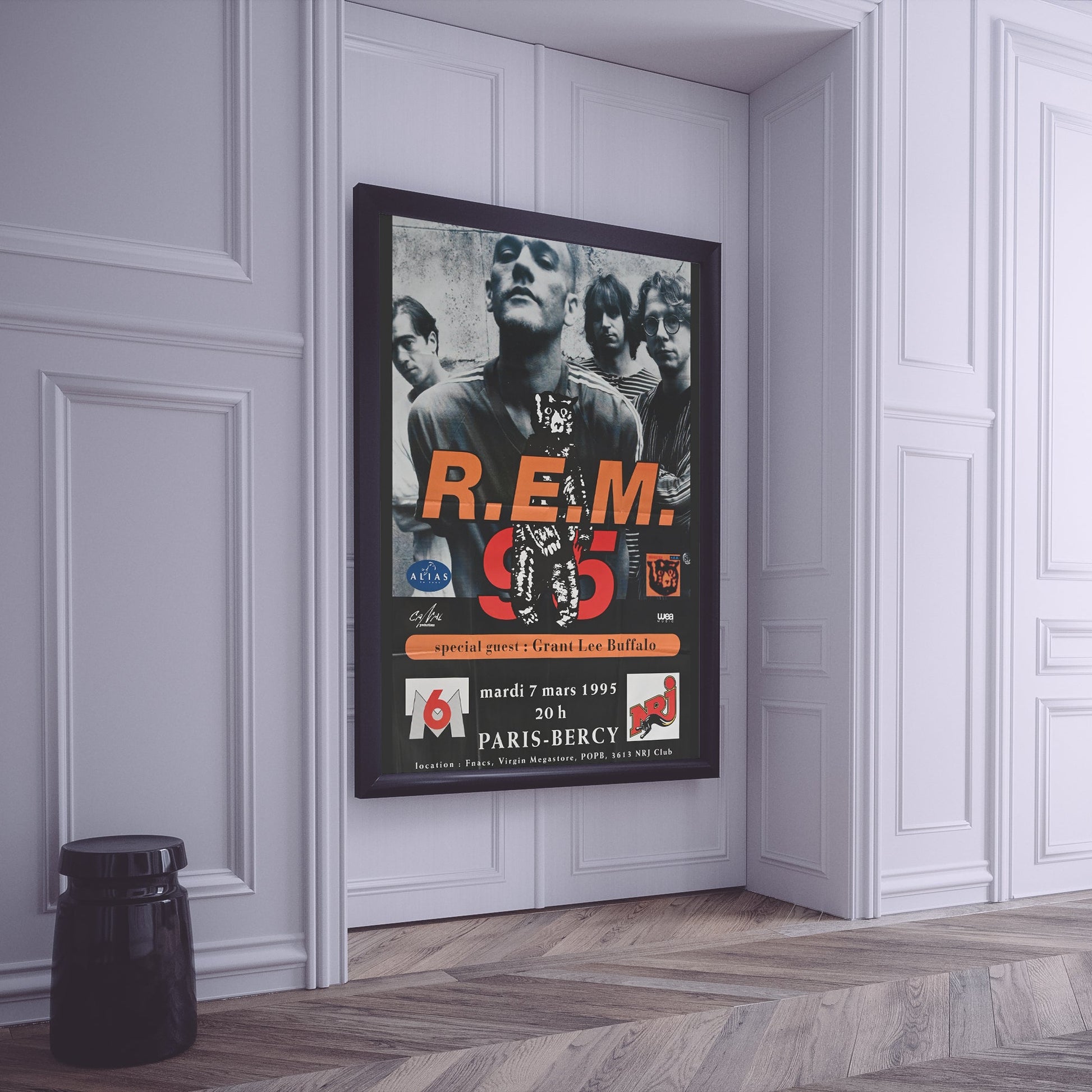 Affiche originale du concert de R.E.M. à Bercy en 1995, un moment fort de la tournée mondiale suivant le succès de l’album « Monster ».