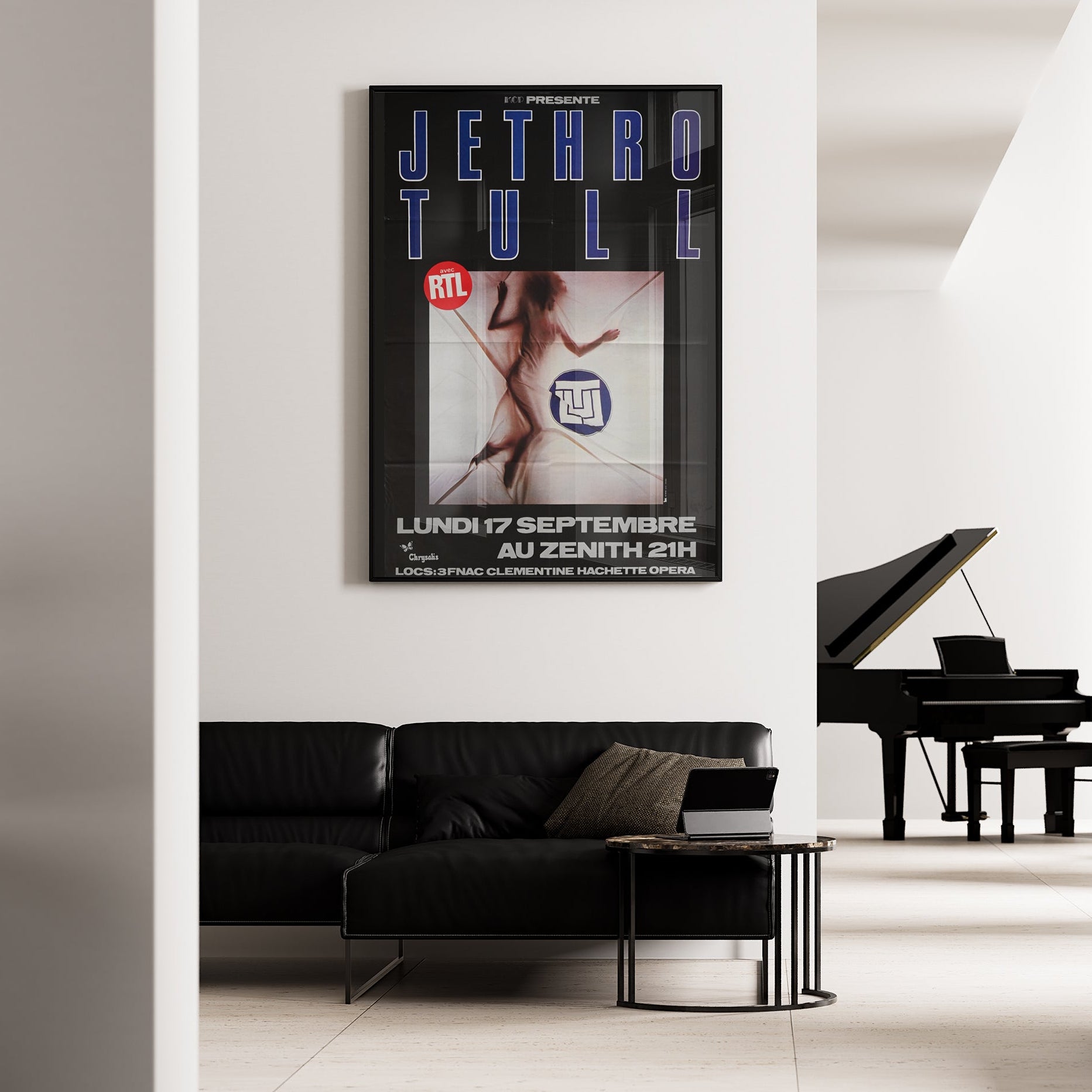 Affiche de concert originale de Jethro Tull au Zénith de Paris en 1984, à l’occasion de la tournée “Under Wraps”.