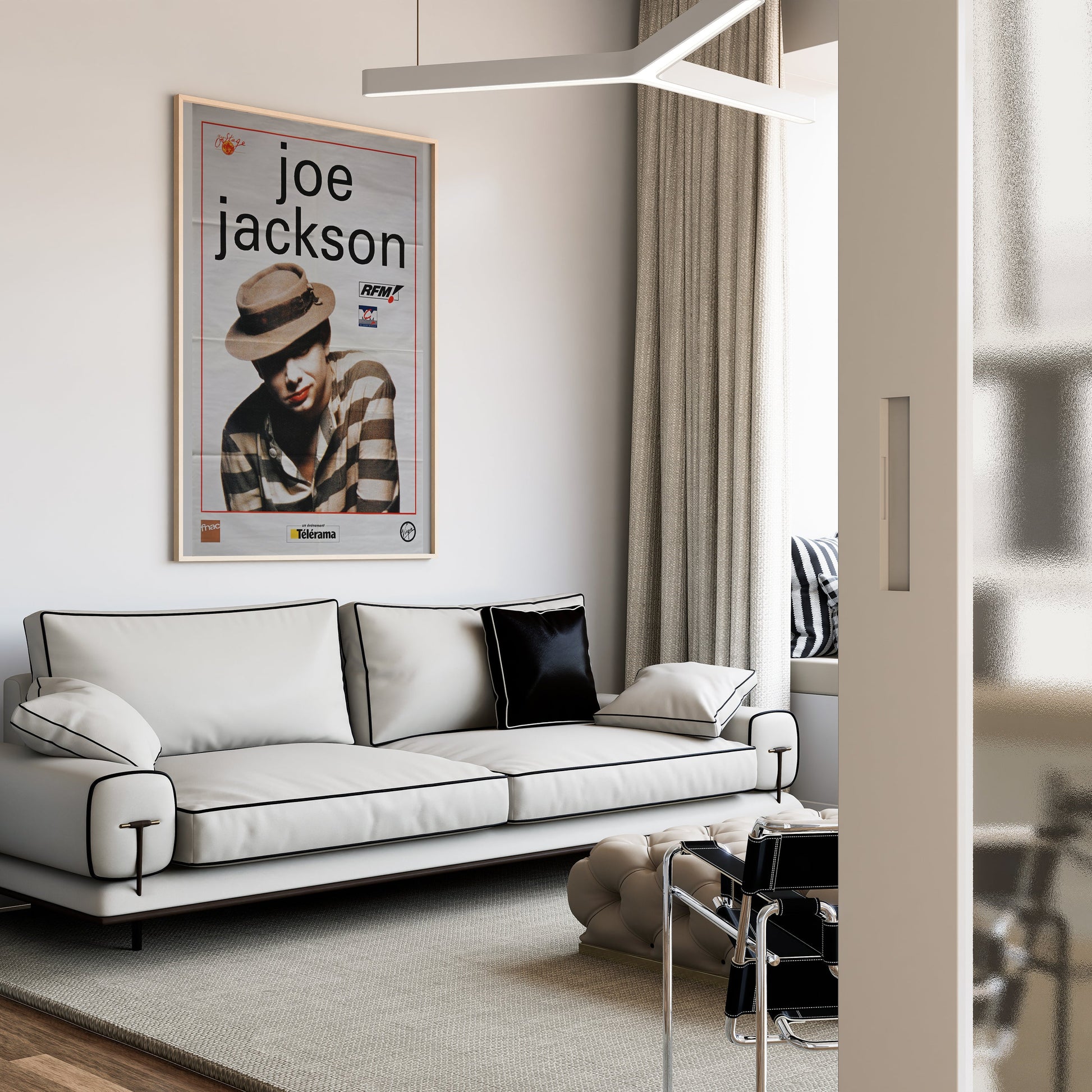 A cette époque, Joe Jackson explore de nouvelles sonorités sur l’album "Laughter & Lust", mêlant pop rock et new wave avec des morceaux marquants comme "Obvious Song" et "Stranger than You". Cette affiche promotionnelle capture l’esprit créatif et l’esthétique épurée de l’époque.